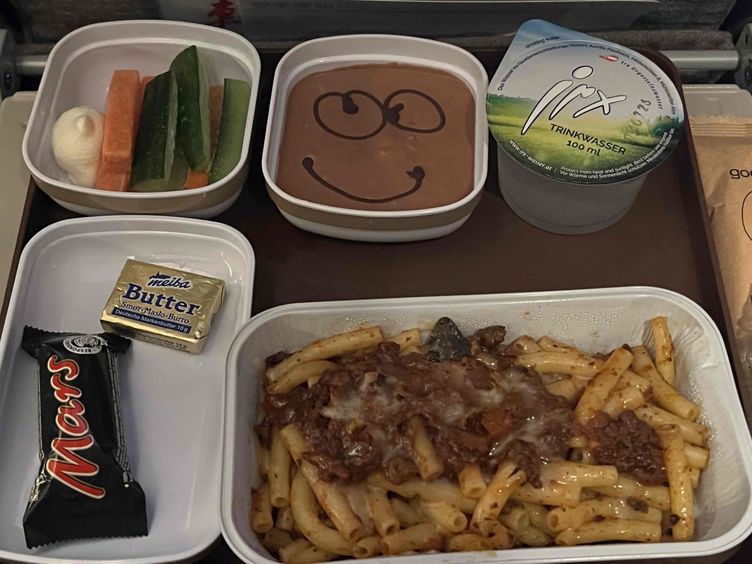 写真には載っていませんが、食事が配り終わった後に別で配られるパンがあり、温かくてふわふわで美味しかったです🥐